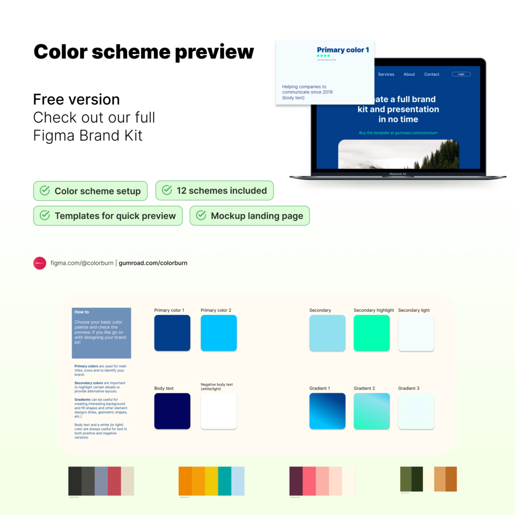 This color scheme is part of the figma brand kit that help you speed up the brand system design process and save dozens of hours.